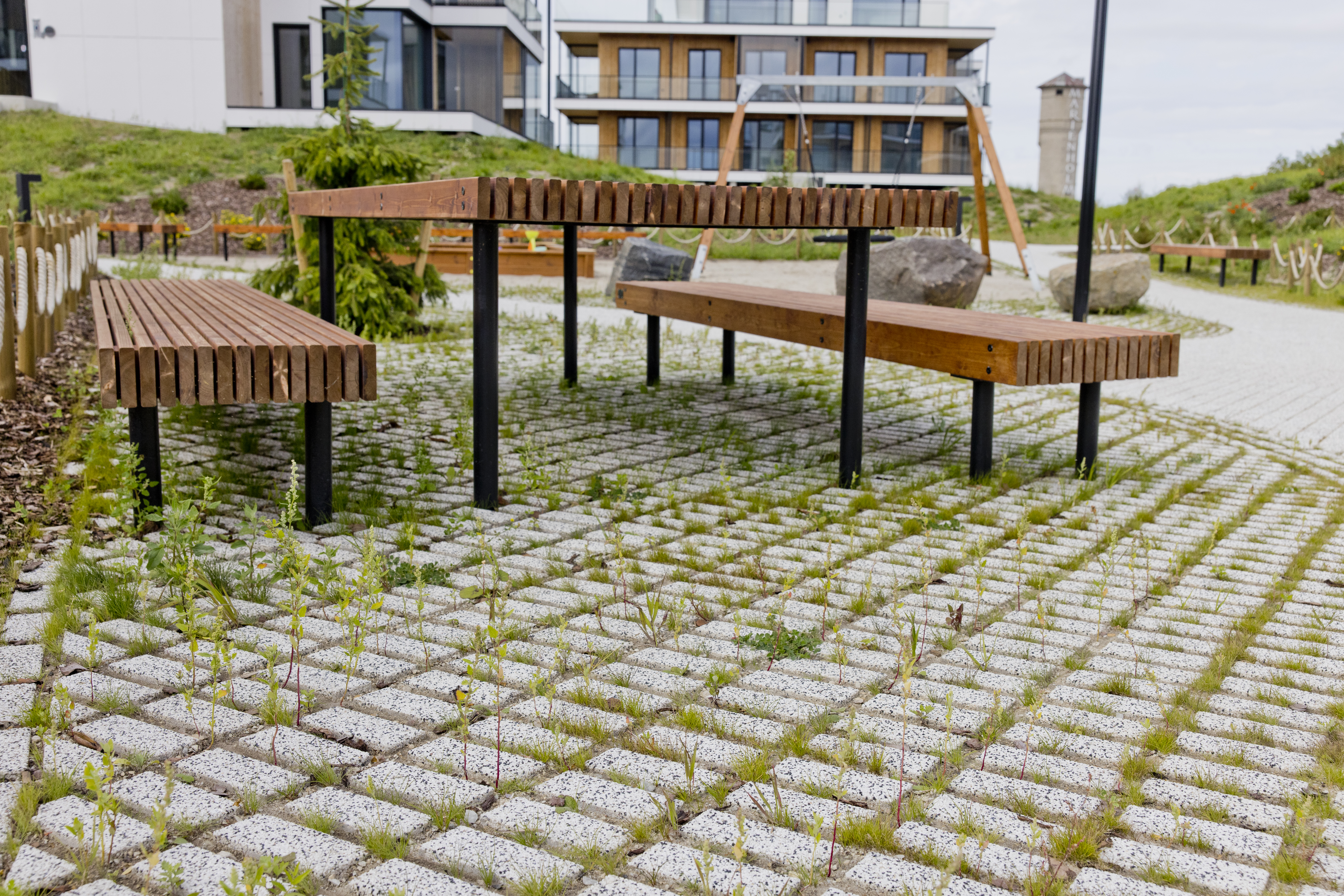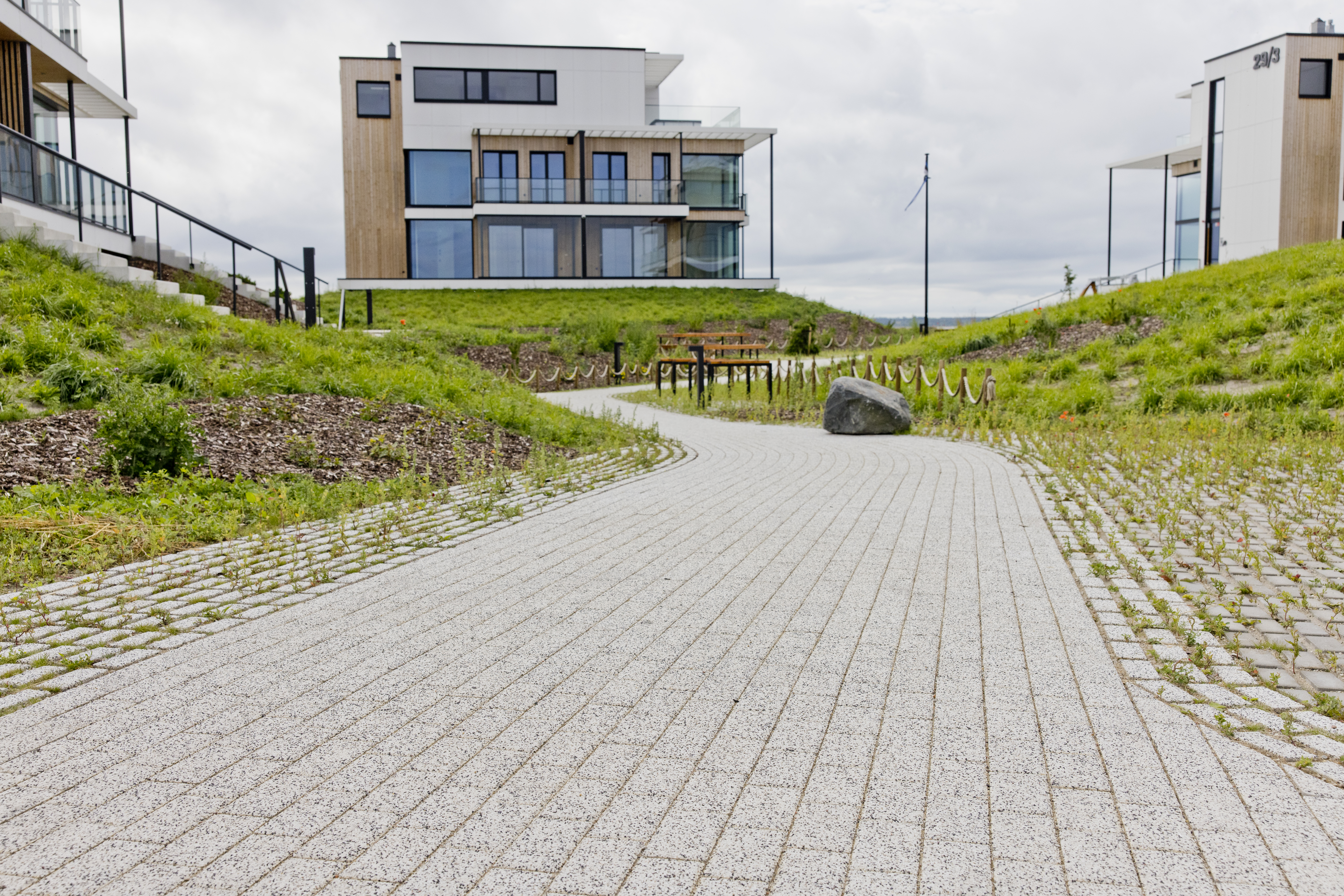 Eriline on see, et üle 2000 m² suurusele projektile valiti vaid kaks toodet ja vaid kaks tekstuuri – need on Eco Line ja Prizma 8 tooted, mis on kaetud loodusliku kivi tekstuuriga Quartz ja looduslikes värvides. Tooteid kasutati teede, ühiste väljakute, vaba aja ja laste mänguväljakute kujundamisel. Eco Line tooted moodustavad parkimisalad, jalgrataste parkimiskohad ja teede ääred. Projekt on rajatud mereäärsesse piirkonda, mistõttu kasvavad Eco Line toodete vahedes kohalikud luidetaimed.