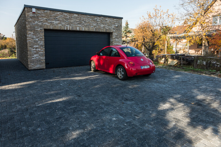 Eraprojekti jaoks valiti mustad, vanutatud Prizma 6B tooted. Eraprojekte planeerides on eriti oluline täpselt hinnata katte eeldatavaid koormusi, kuid tavaliselt moodustavad erakatete koormused kergsõidukid, mistõttu piisab katte jaoks täiesti 6 cm paksustest toodetest.