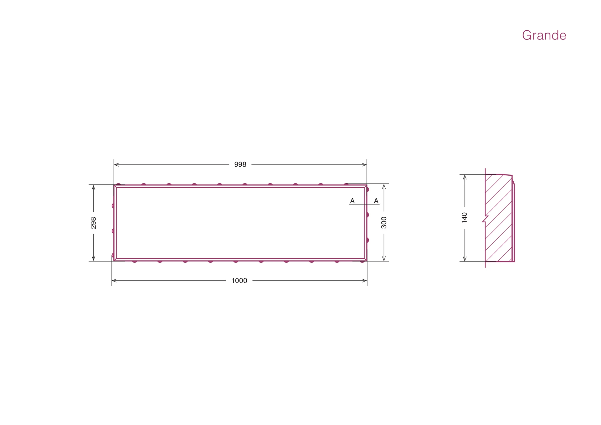 1000x300x140 mm