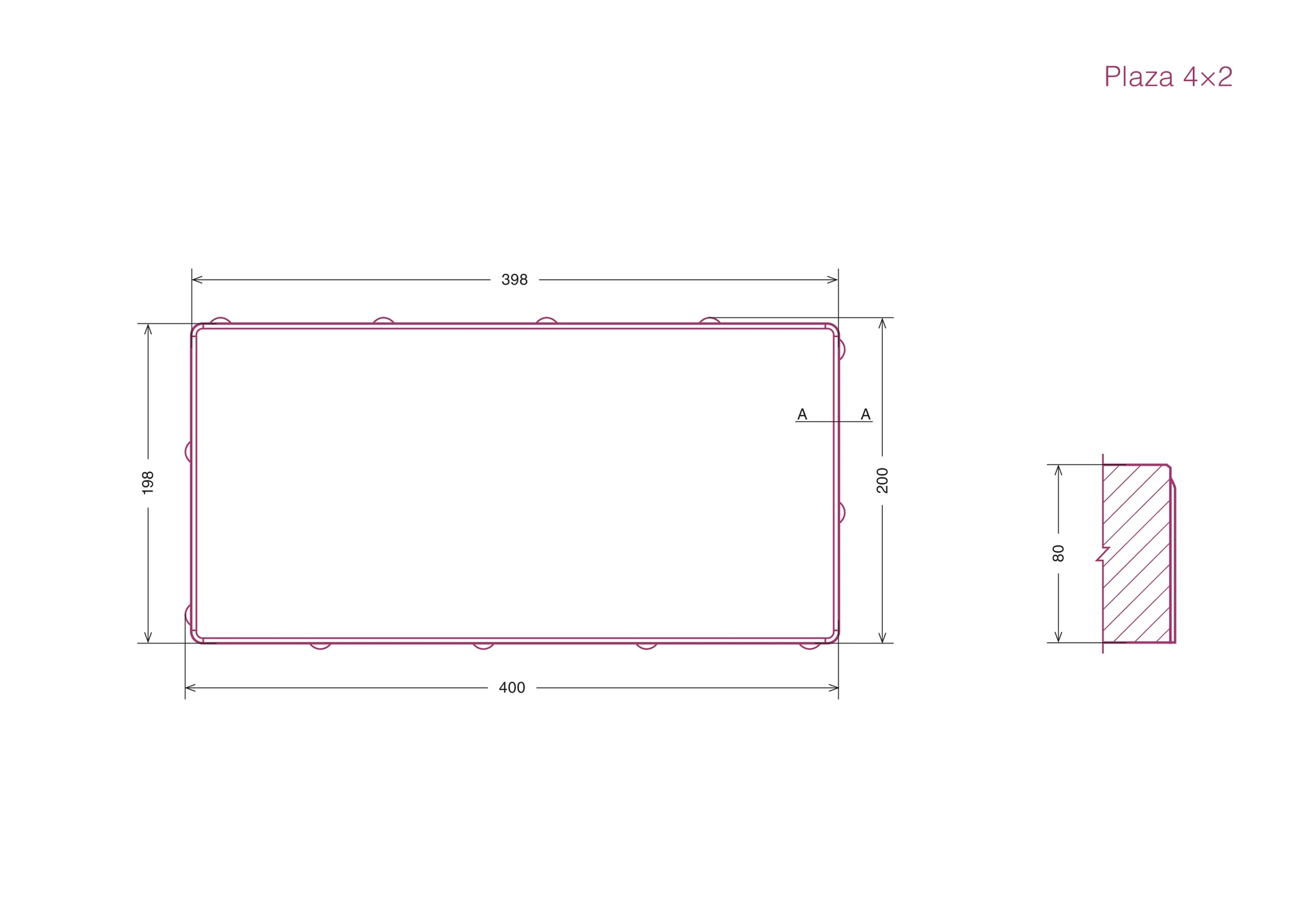Plaza 4×2 on paljude võimalustega toode. See ühildub kõigi Plaza toodetega ja seda saab segada ühe või mitme tootega. Toode pakub ka laia värvi- ja tekstuurivalikut. 80 mm kõrgus võimaldab toodet kanda kandvatele pindadele.